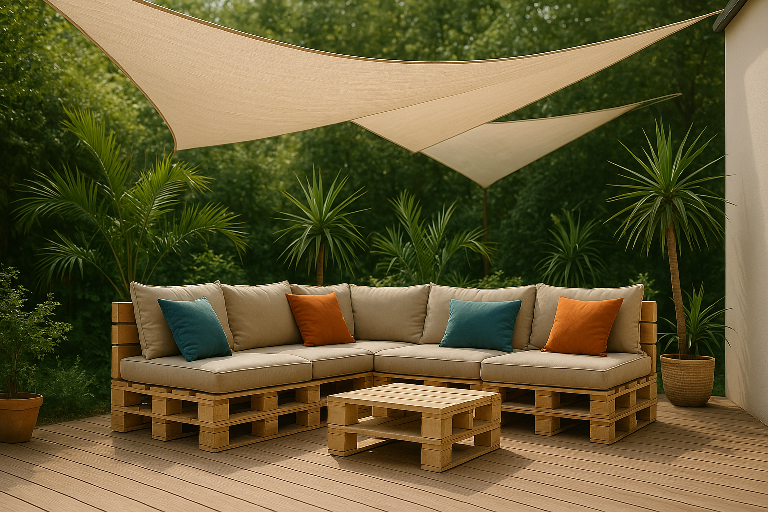 Jak połączyć żagle przeciwsłoneczne i poduszki na palety, by uzyskać stylową strefę komfortu?